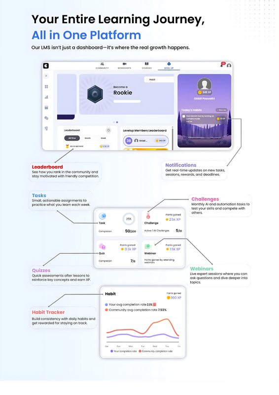 | Limited tool exposure | Master 20+ Powerful Tools Hands-on mastery of 20+ AI & automation tools with ready-to-use blueprints |